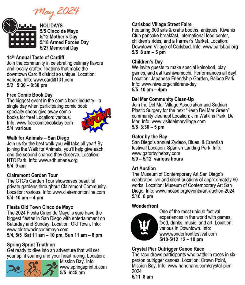 5月,聖地牙哥迎來熱鬧精彩的活動!無論是享受海灘陽光,探索動物園奇妙世界,還是參與文化節慶,絕對能滿足您的期望。別錯過這個充滿活力的月份,趕快查看下方更多遊玩活動吧!