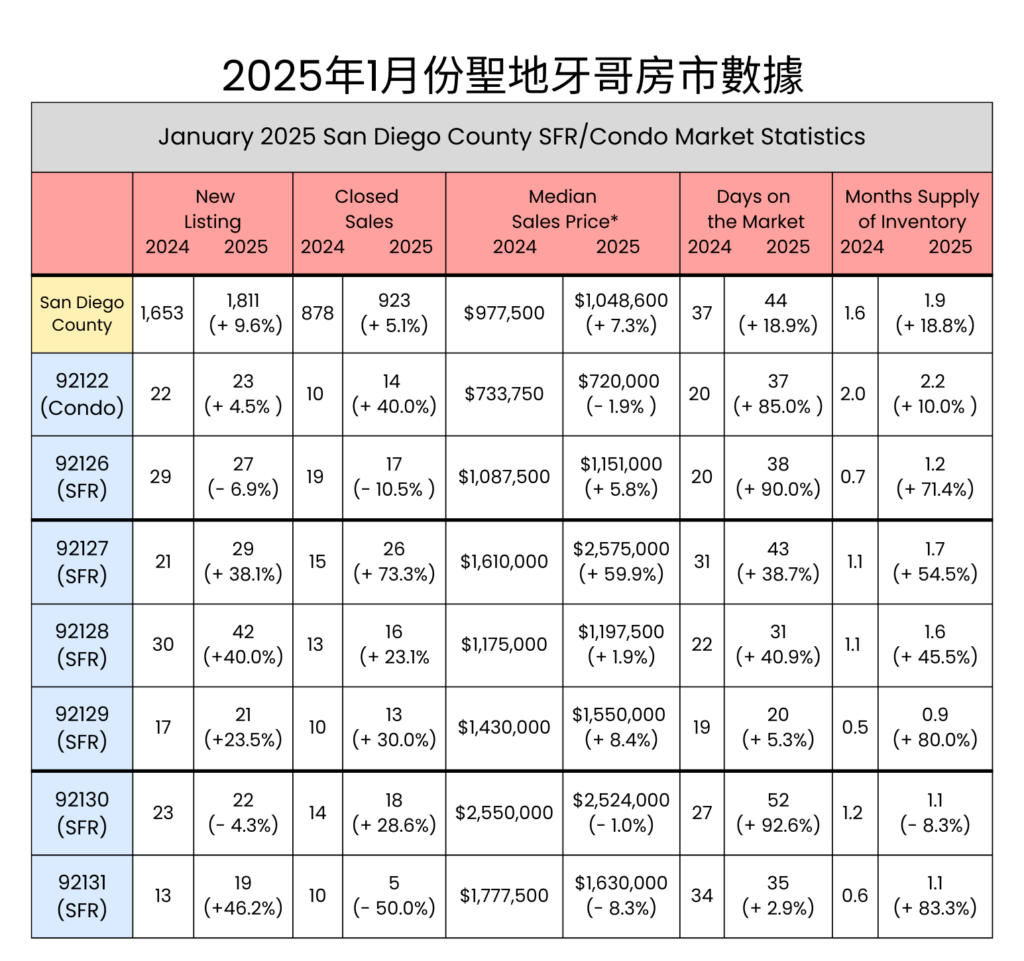 聖地牙哥2025年一月份房市數據Kendra02/07/2025聖地牙哥房市數據 # Properties# RealEstate# RealEstateMarket# SanDiego# 聖地牙哥買房,聖地牙哥賣房,聖地牙哥